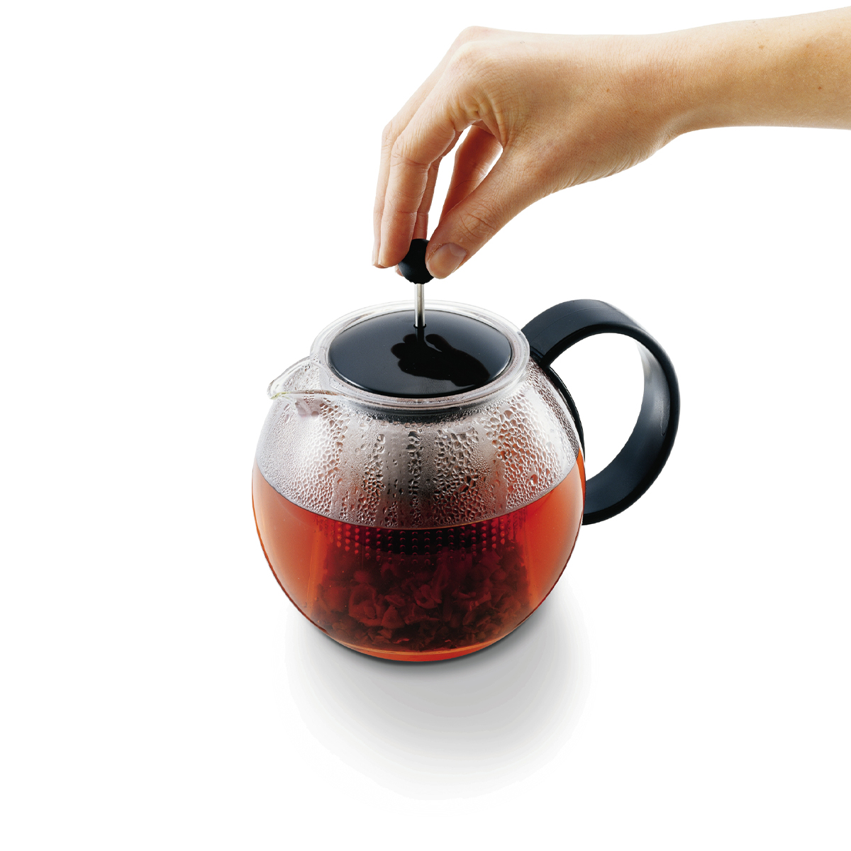 Do dzbanka należy wsypać herbatę, zalać gorącą wodą i pozostawić na 3 do 5 minut w przypadku herbaty czarnej lub 5 do 10 minut przy parzeniu herbat ziołowych i owocowych. Po uzyskaniu odpowiedniej mocy naparu należy opuścić tłok.