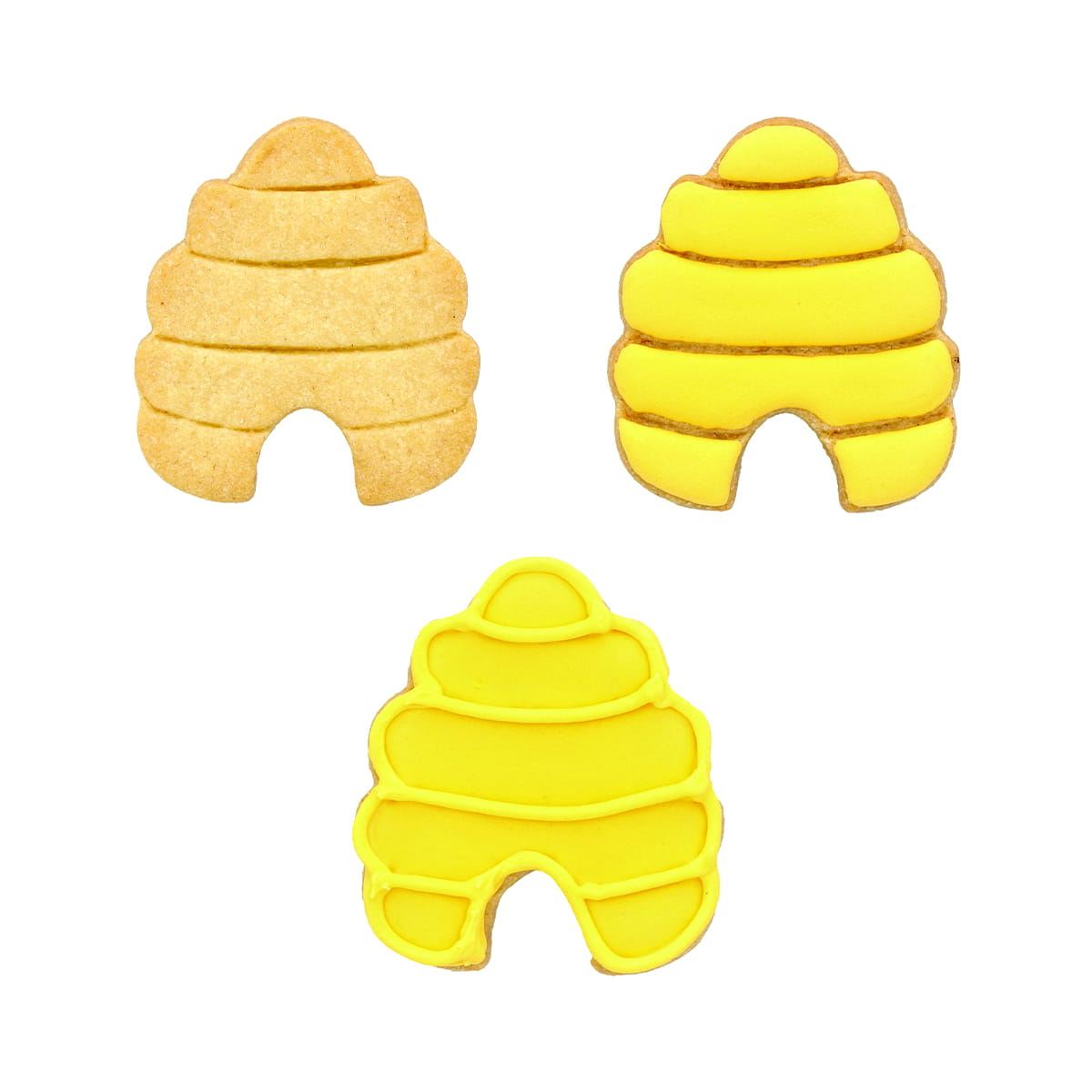 Wykrawacz wycina kształt ula oraz odciska jego wewnętrzne kontury, które po upieczeniu ciasteczek ułatwiają lukrowanie.