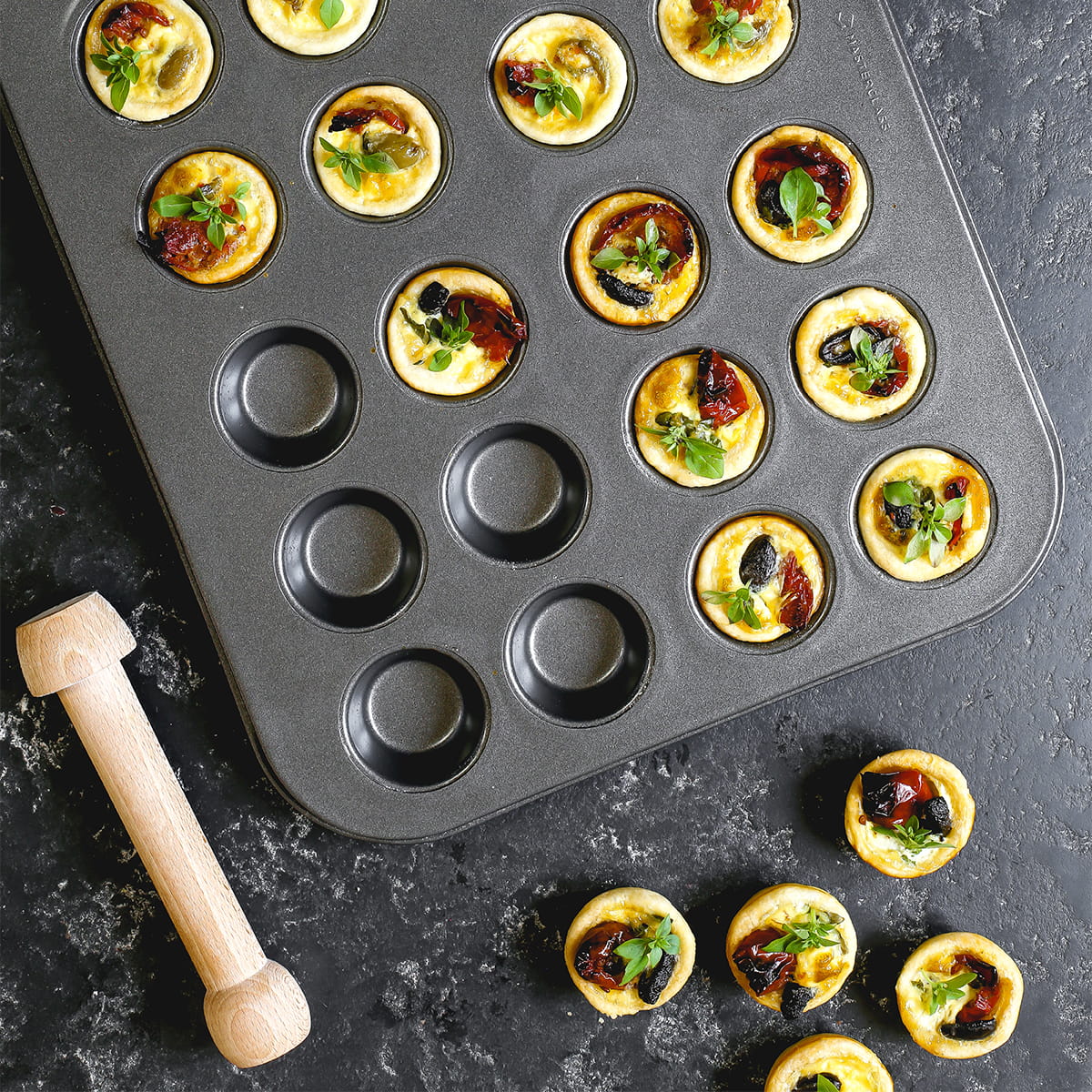 Zrób wrażenie na gościach dzięki oryginalnym wypiekom! Forma MasterClass z 24 wgłębieniami do mini tart pozwala z łatwością tworzyć idealne kruche spody.Czym wyróżnia się forma do mini tart?