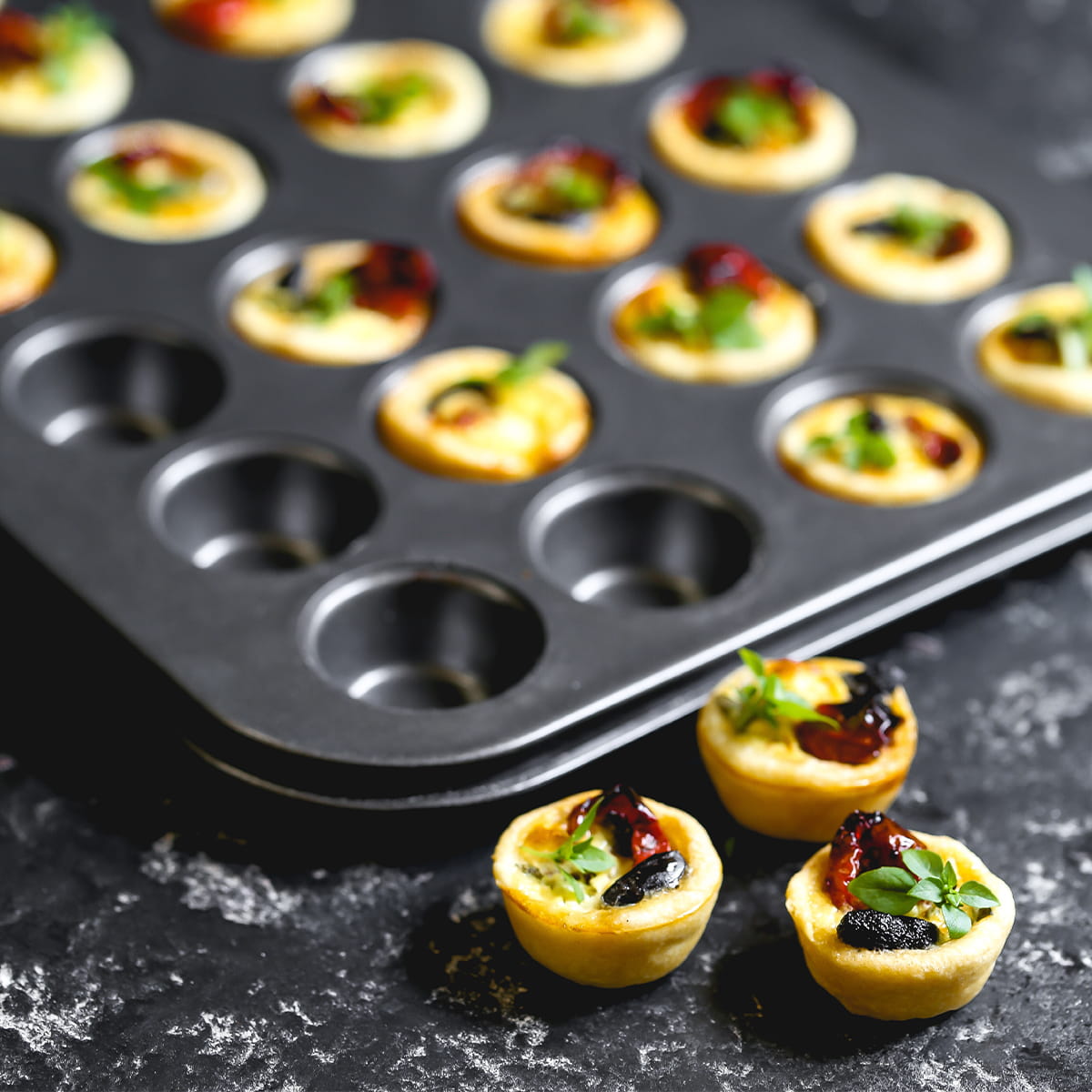 Dzięki tej formie stworzysz wykwintne przekąski na słodko i słono.- Nieprzywierająca powłoka Quantum 2 – łatwe wyjmowanie wypieków, trwałość i szybkie czyszczenie.