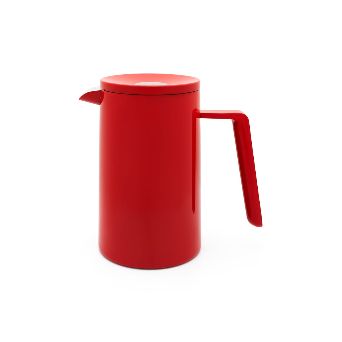 Czerwony french press do parzenia kawy z podwójnymi ściankami dla miłośników nie tylko dobrej kawy, ale i dobrego wzornictwa.